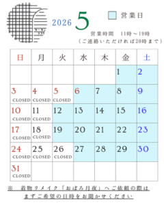 着物リメイクブランド「おぼろ月夜」の展示販売と着物リメイクオーダーを承ります。
